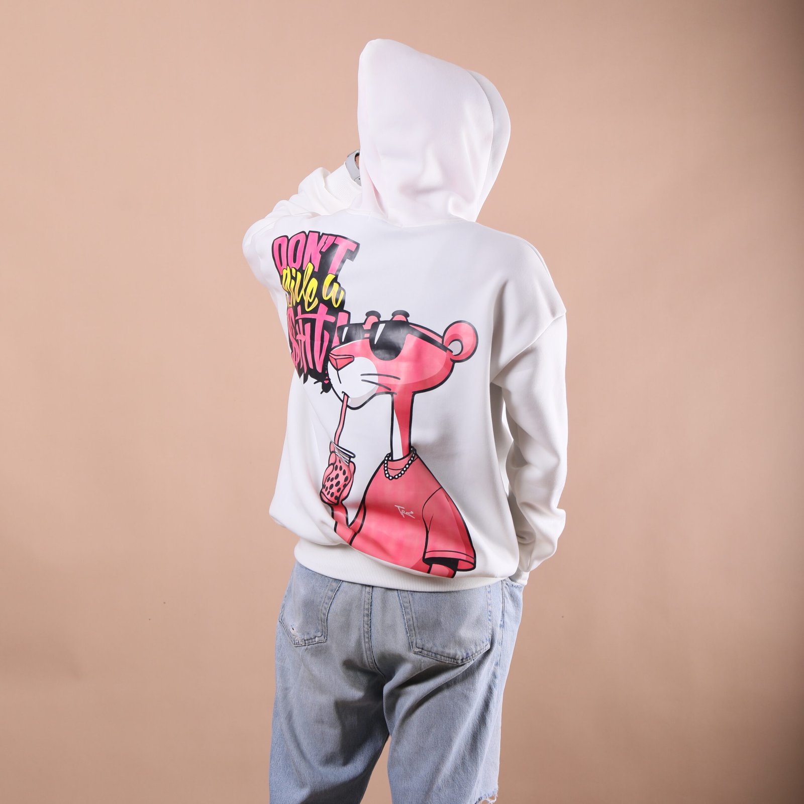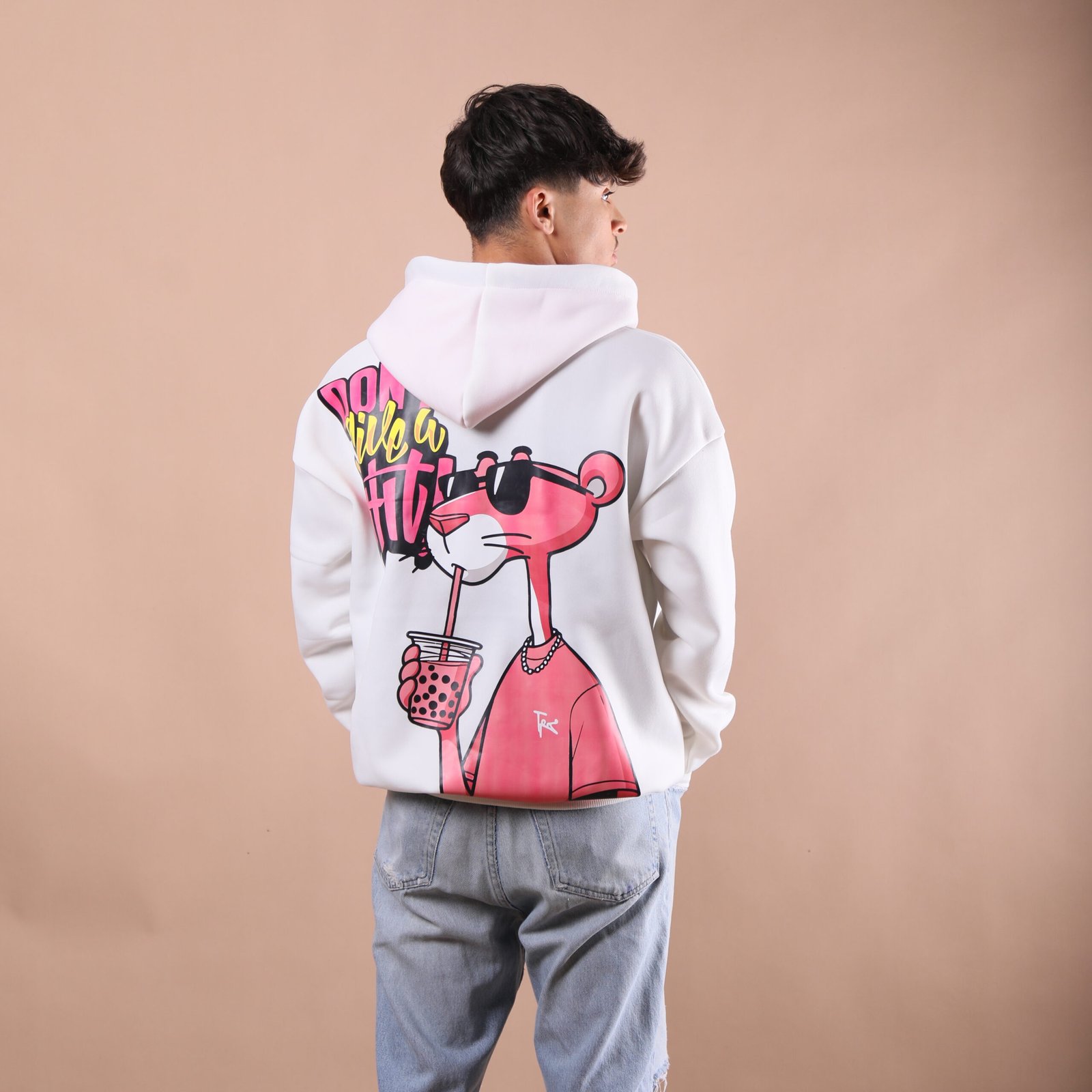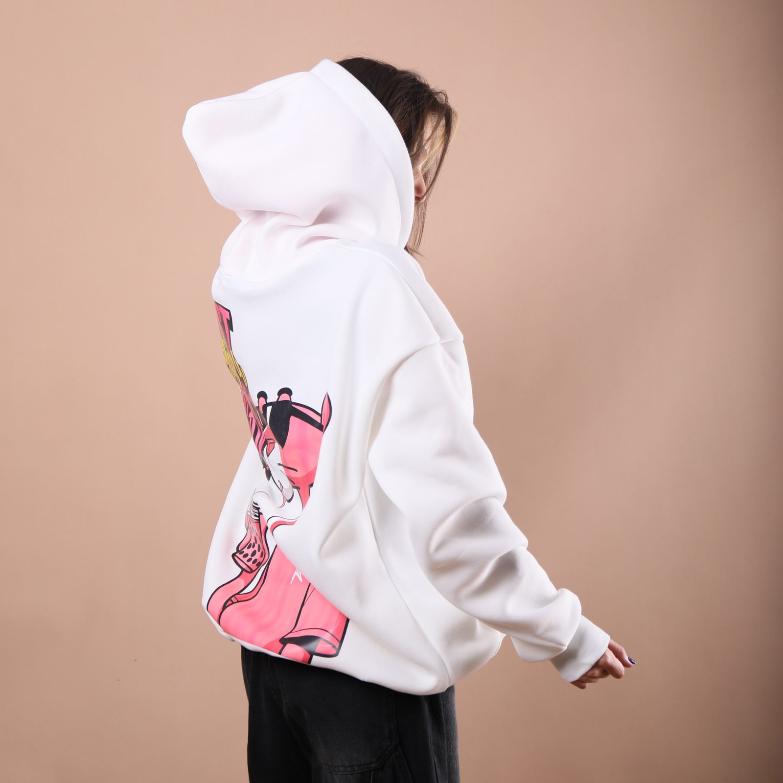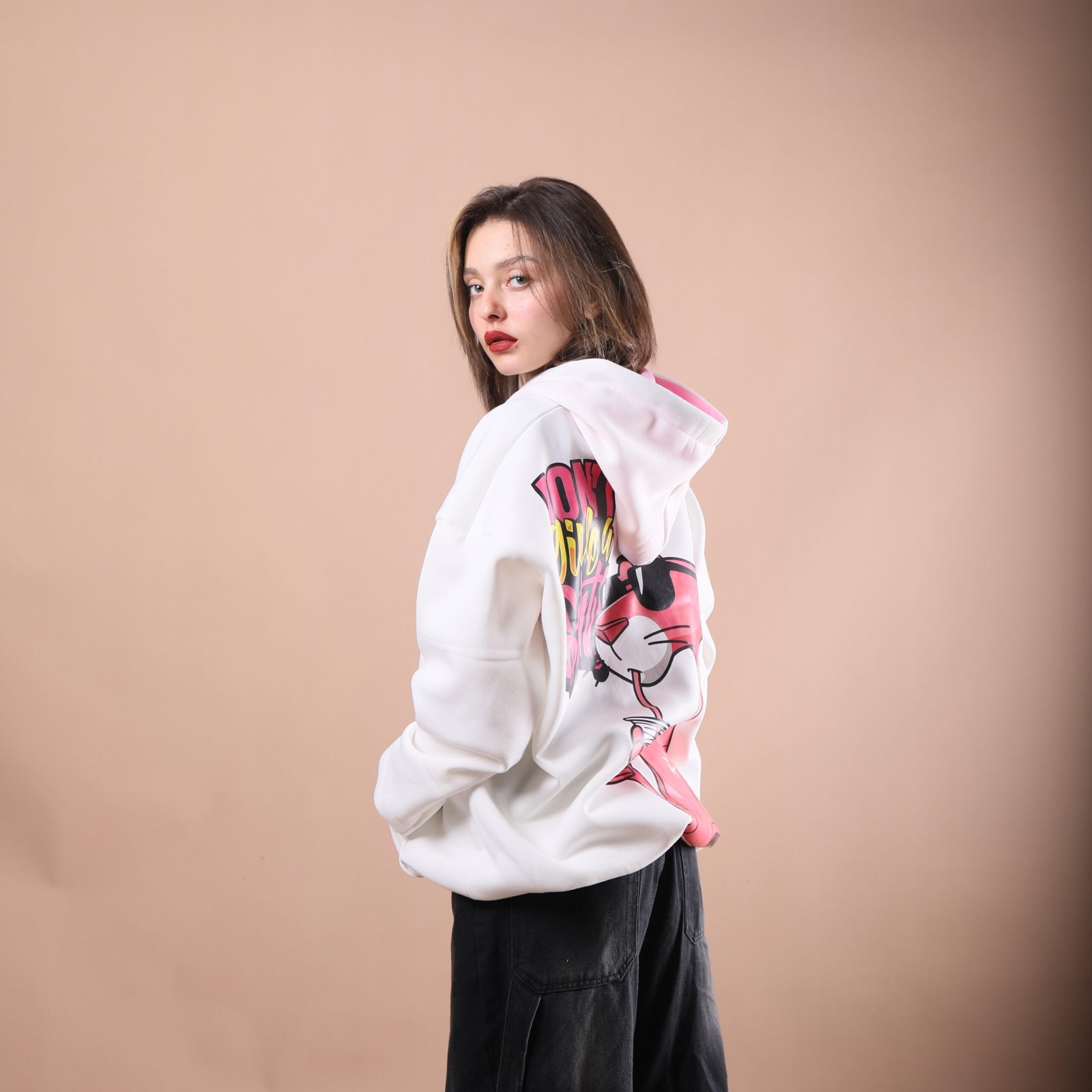 Alvino sweat shirt Capuche oversize unisexe – pink panther blanc