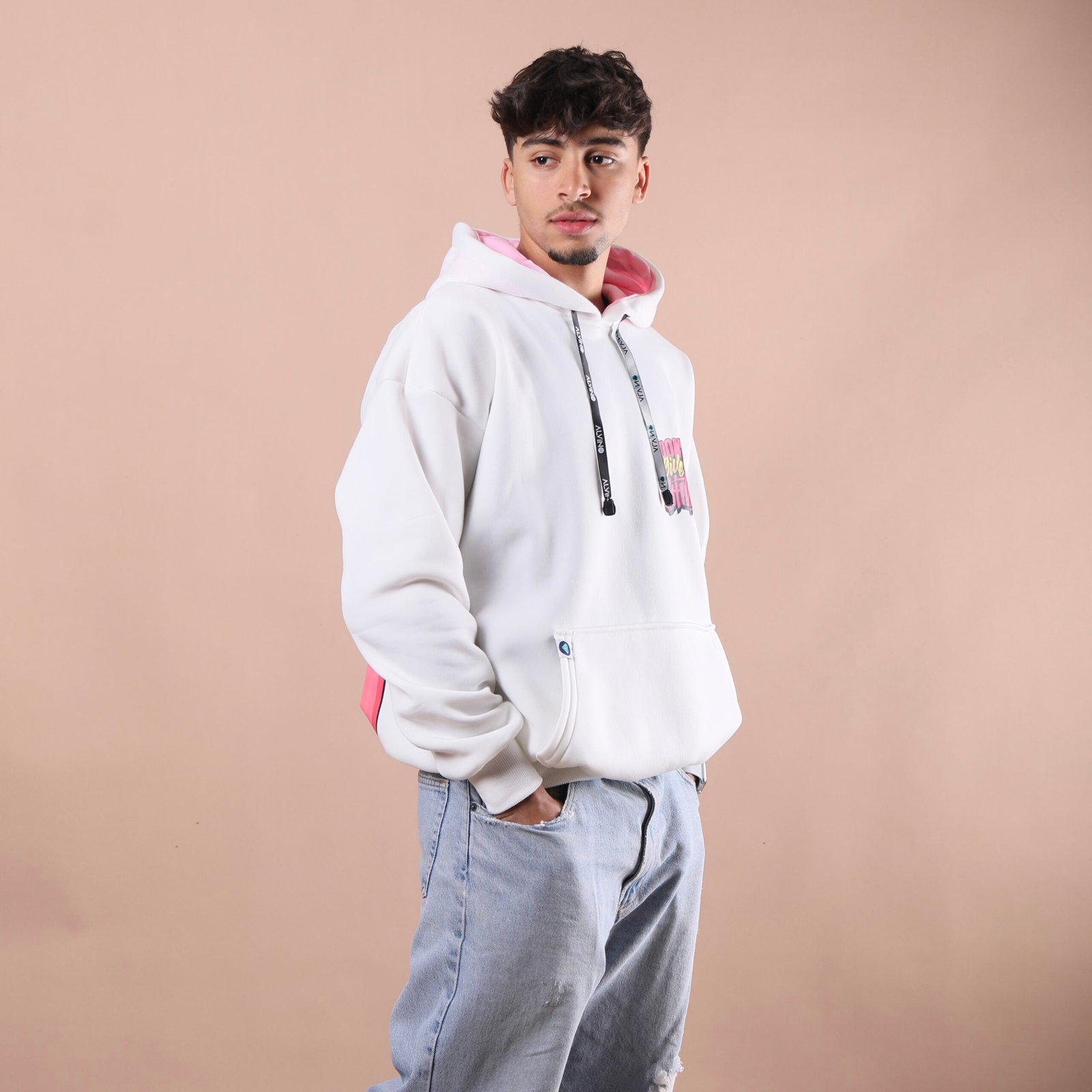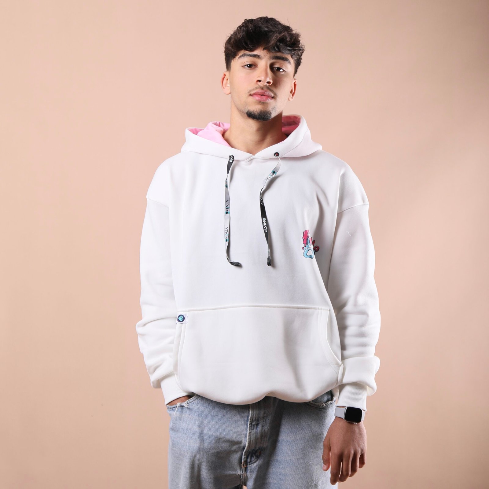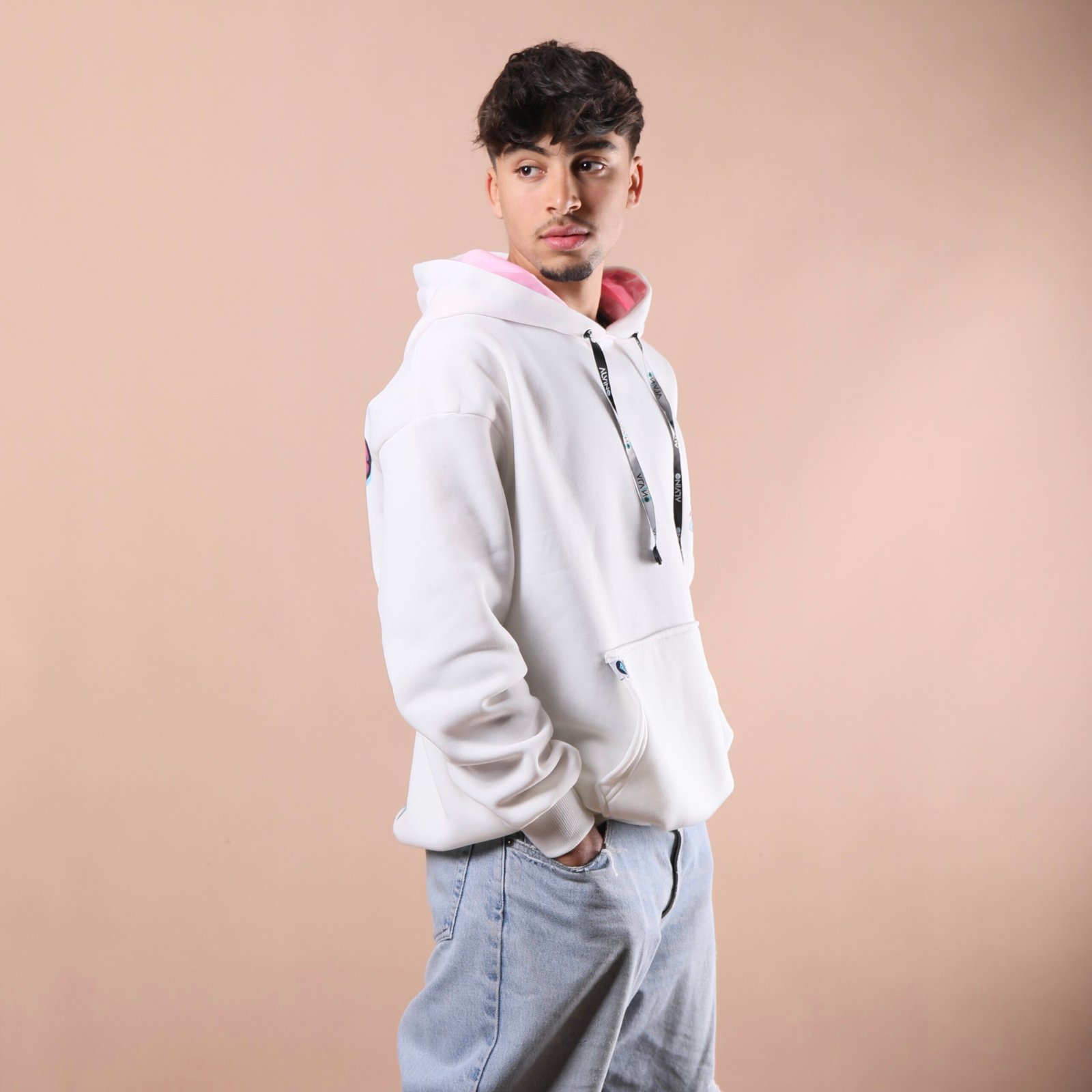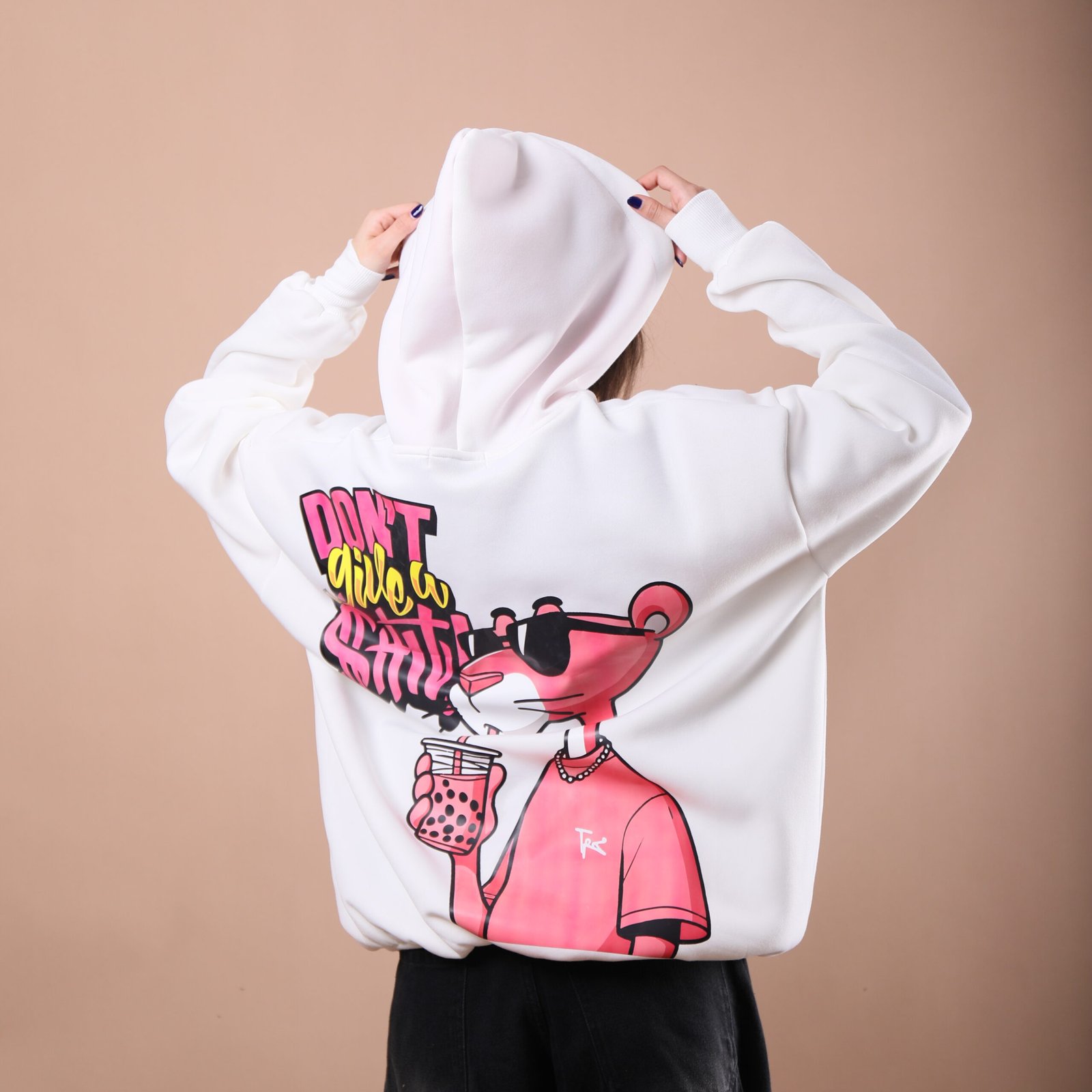 Alvino sweat shirt Capuche oversize unisexe – pink panther blanc