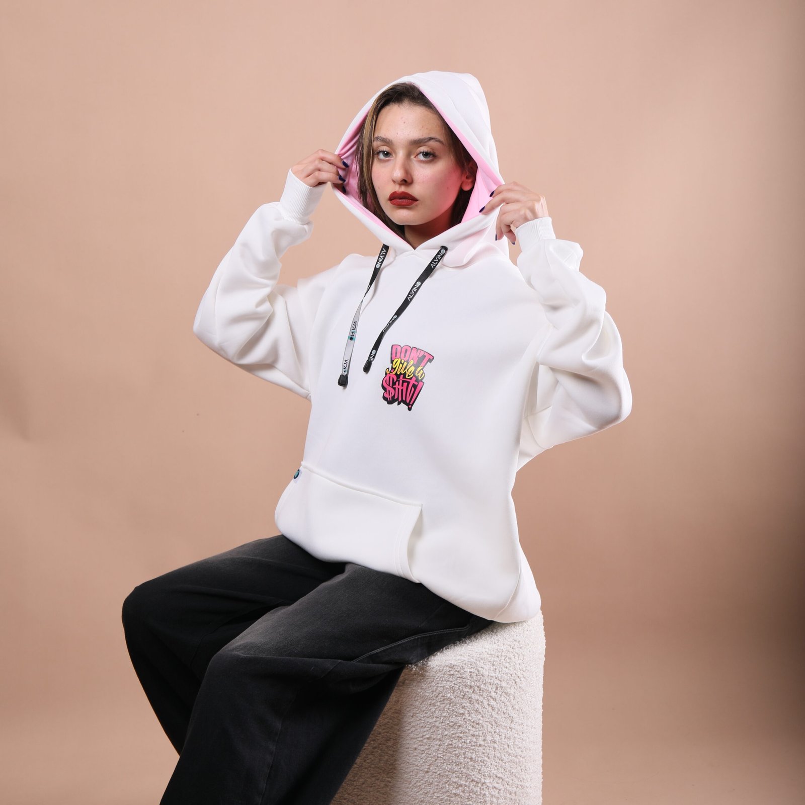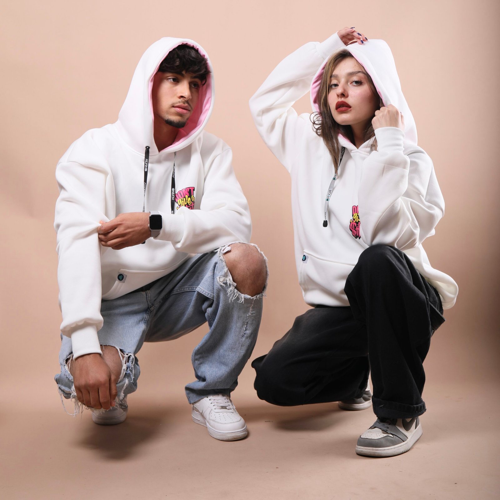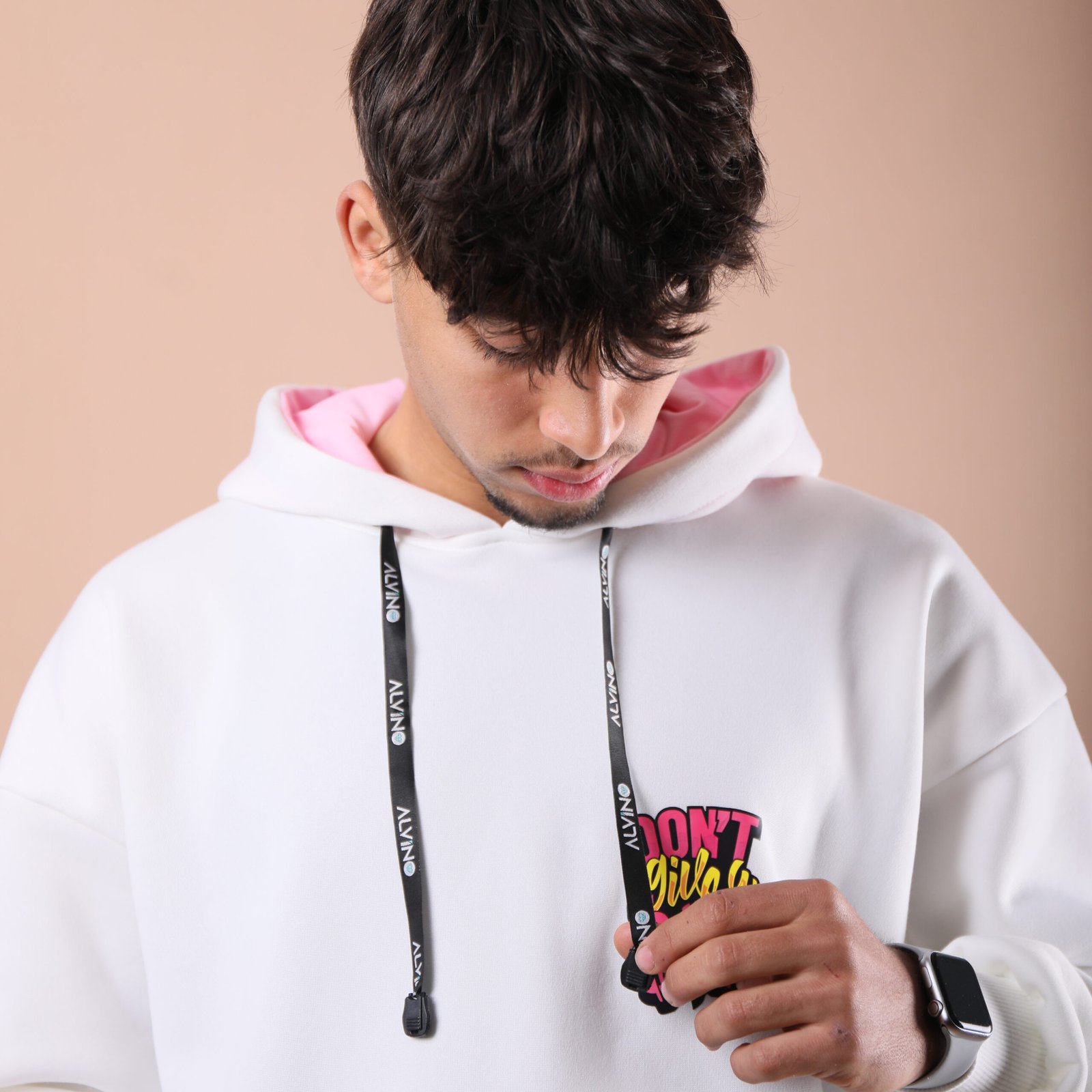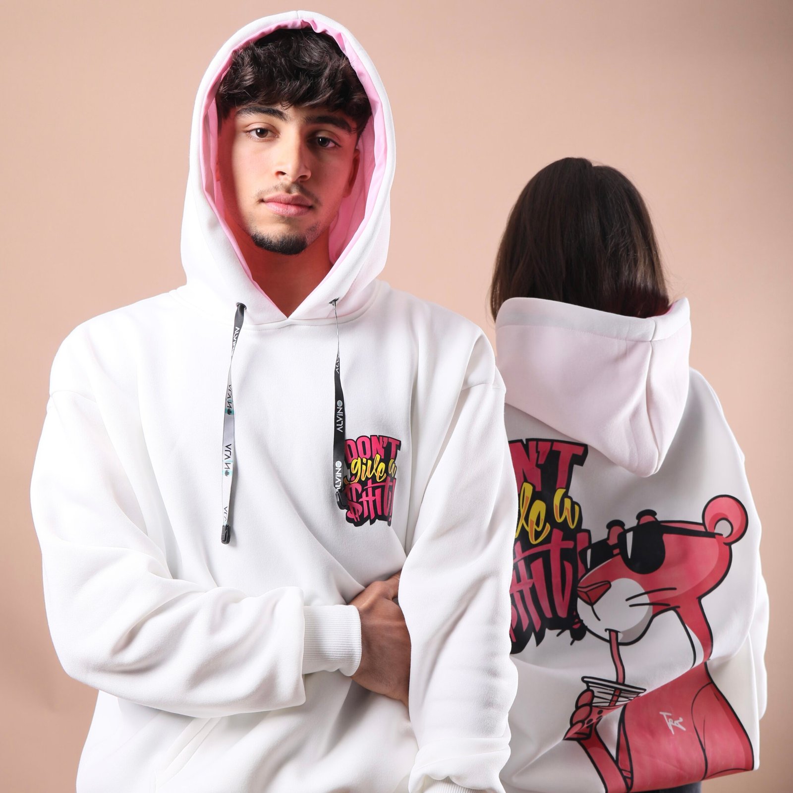 Alvino sweat shirt Capuche oversize unisexe – pink panther blanc