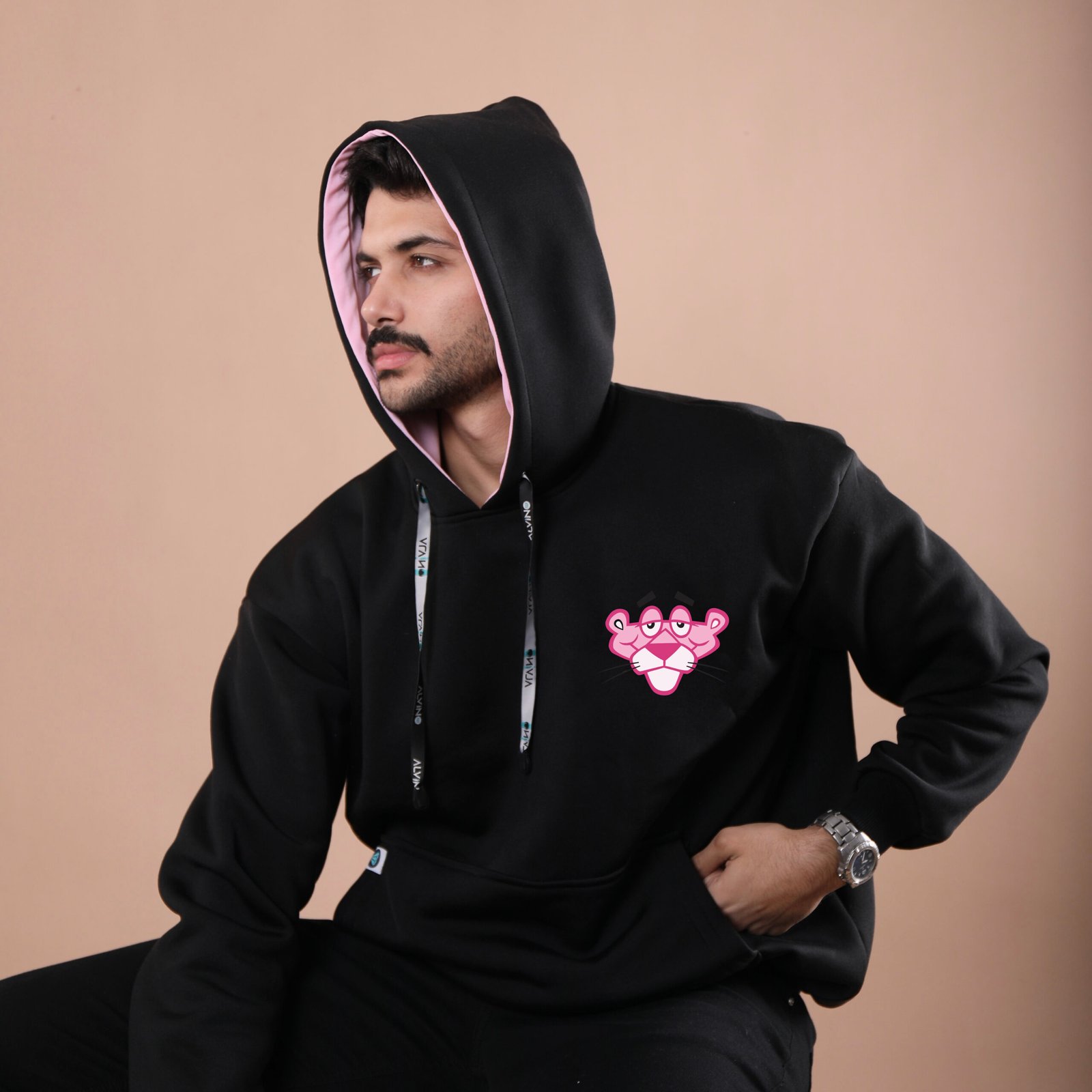 Alvino sweat shirt capuche oversize unisexe – pink panther noir